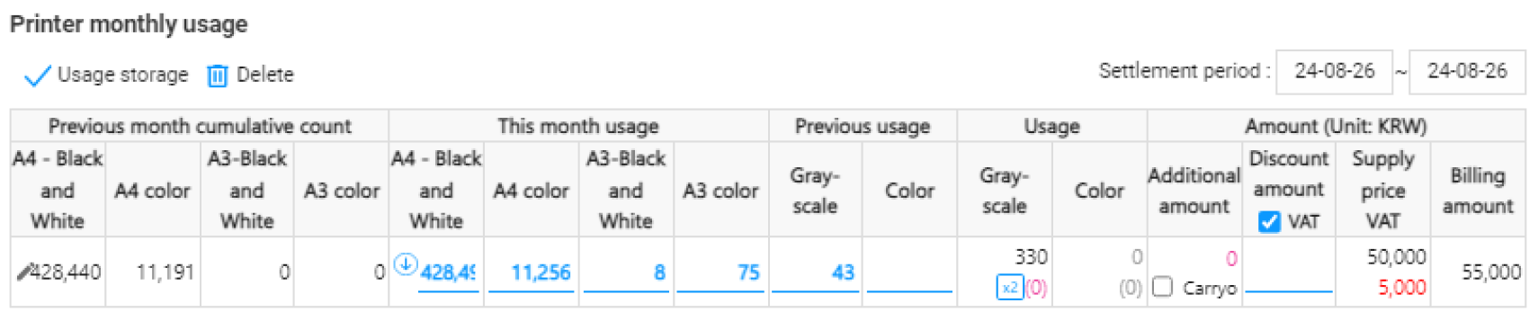 You can check real-time counter information and consumables information, and automatic monthly usage settlement and usage carryover are possible.
